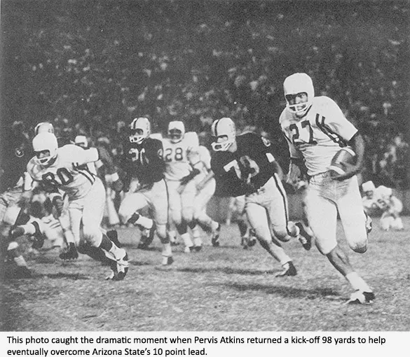 Football was a low-priority that autumn for a perplexed freshman, intimidated by the academic and social requirements. Nevertheless I followed the team and attended the home games. Bob Gaiters was the national rushing champion. Pervis Atkins had won the title the year before, and seemed always to be the instrument of magic when magic was needed.
