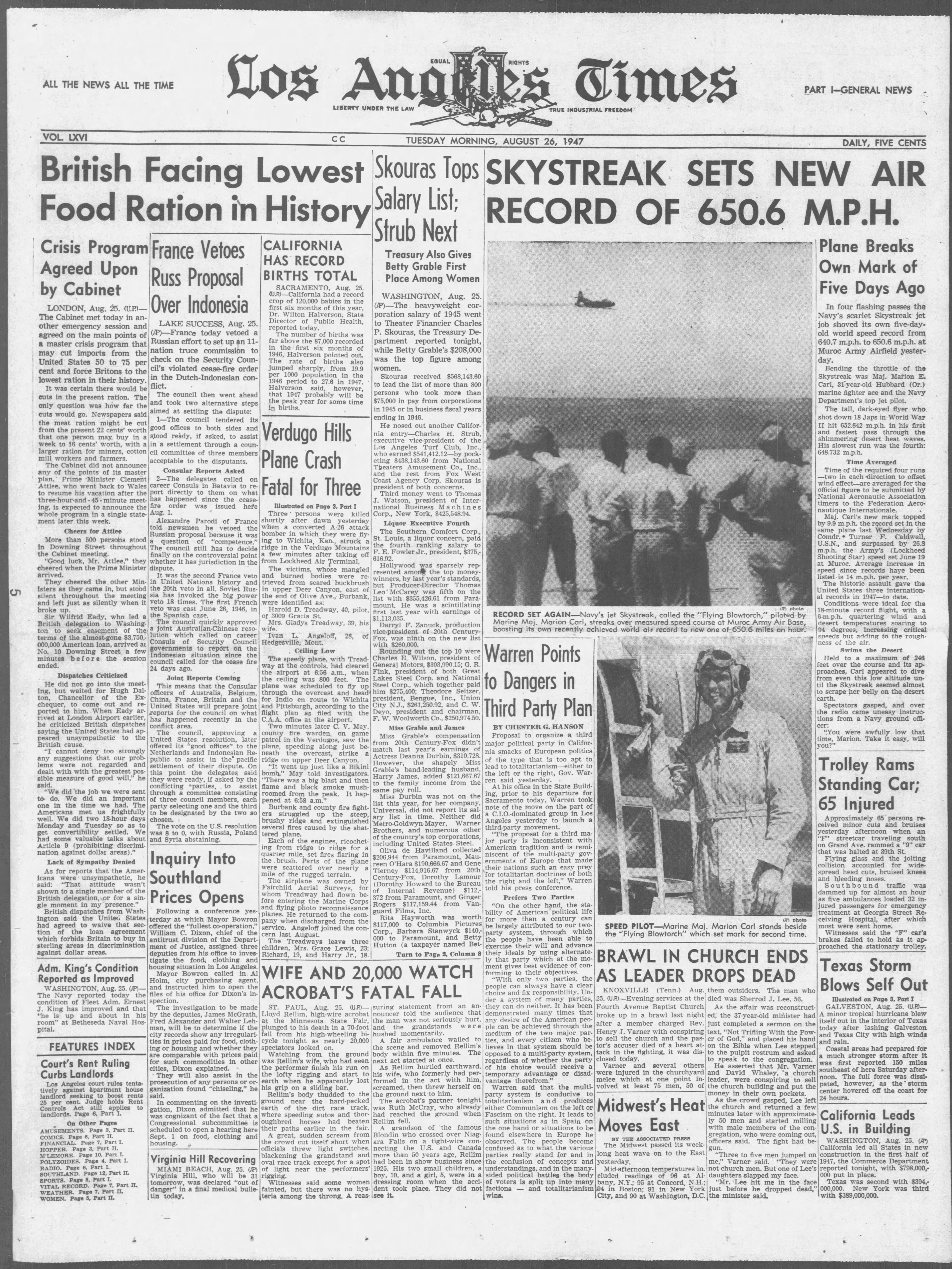 1947 was the year Chuck Yeager broke the sound barrier. But he wasn't the story in 1947, because it wasn't announced until 1948.