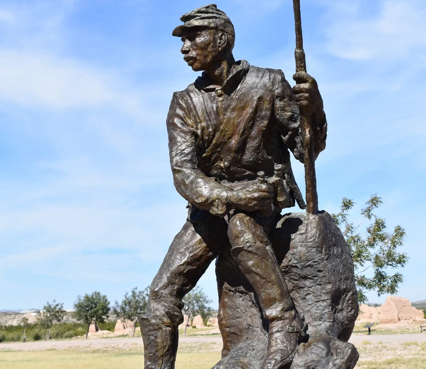 The town of Jal, New Mexico is named for the JAL ranch that, between 1885 and the Great War, ran as many as 40, 000 head of cattle around Monument Draw. Norwood's sculpture, "The Trail Ahead," is a direct reference to the JAL ranch, featuring one of its cowboys, Henry Scott, as one of the rider silhouettes.