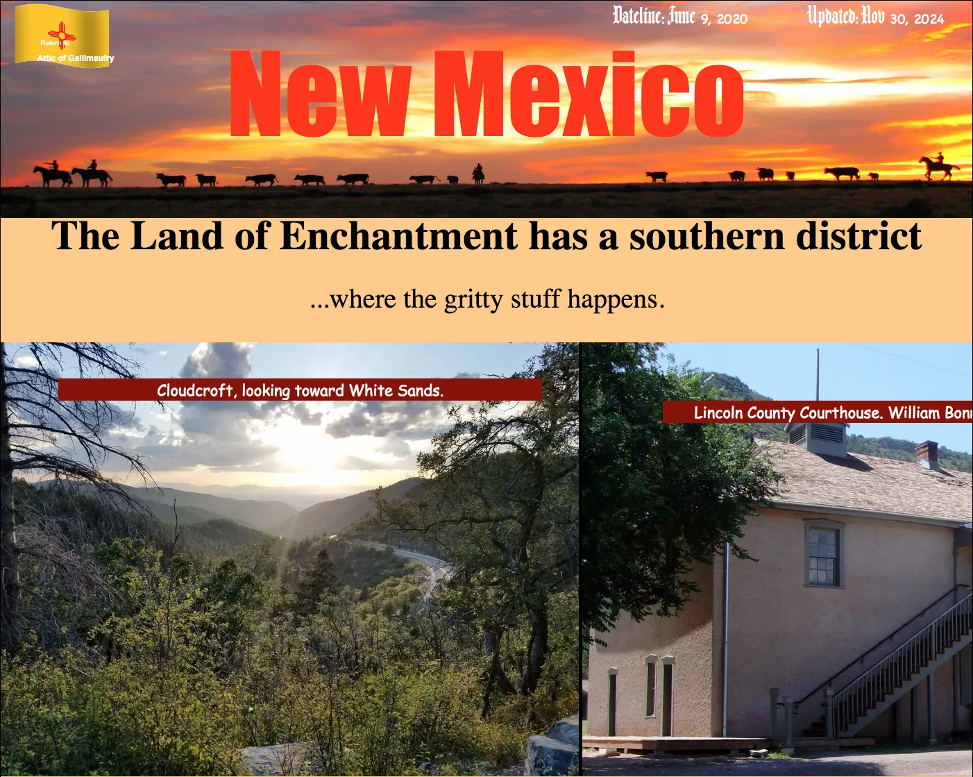 Several Southern New Mexico musings gather elsewhere in the Attic of Gallimaufry, including the first presidential visit, lawmen (and lawlessness), school lessons, a radio announcer from Carlsbad, a Vietnam-era chum, a fort, a football season, an aspirational village, and the town most often believed fictional.