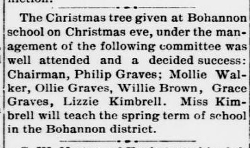 "PIE AND BOX SUPPER--There will be a program and pie supper at the Bohannon School Wednesday night, November 1. Ladies please bring pies and boxes. PAUL GRAVES AND PUPILS."