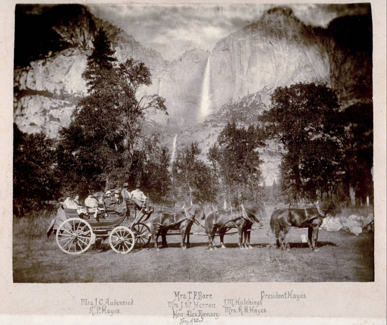 The size of the official party fluctuated throughout the journey but usually averaged about nineteen. A limiting factor, especially restricting the number of women in the party, was the necessity of using army field ambulances to cover some five to six hundred miles of rough roads and desert country between railheads. As finally constituted the official party consisted of President Hayes, Army Chief-of-Staff William Tecumseh Sherman, and Secretary of War Alexander Ramsey, together with members of their immediate families, personal friends, and staff assistants. Hayes took his wife Lucy, two sons, Birchard and Rutherford, a favorite niece, Laura (Mrs. John G. Mitchell), and two dear friends from Cincinnati, Mr. and Mrs. John W. Herron. Isaiah Lancaster attended to the President's personal needs, while Mrs. S. O. Hunt, a young matron of Oakland, California, who had been staying in Washington, came along as a traveling guest of Mrs. Hayes. General Sherman brought his daughter Rachel, Mrs. Joseph Crain Audenried, the recently widowed wife of his longtime military aide, and General Alexander McDowell McCook, another of his aides. Secretary Ramsey's contingent included his son-in-law, Charles E. Furness of Philadelphia, and his private secretary and personal adviser, Colonel Thomas F. Barr of the War Department, who was accompanied by his wife Julia. Colonel Jameson and Dr. David Lowe Huntington, an army surgeon from the Soldiers' Home in Washington, completed the presidential party.