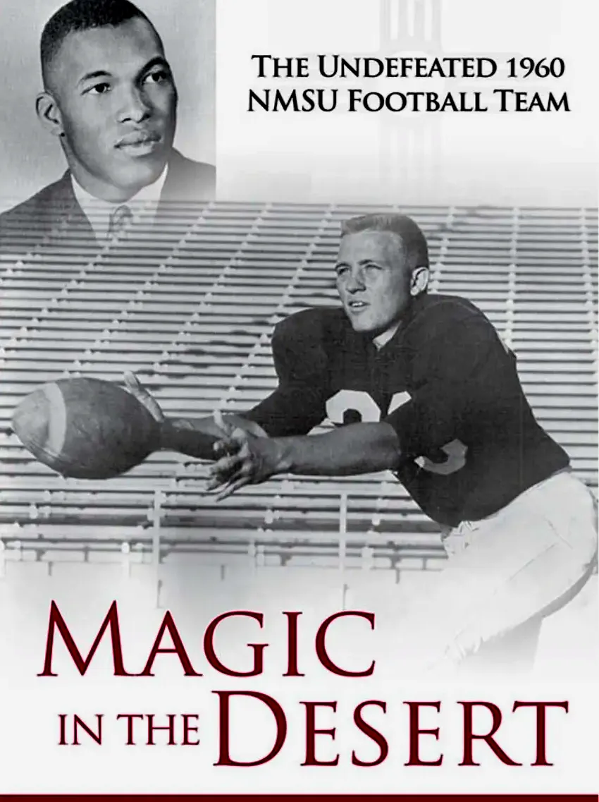 “Magic in the Desert,” by Dan Perry recounts the improbable perfect season of the 1960 New Mexico State Aggies football team, immortalizing its inconsonance with a long, lusterless Aggie football legacy. In 1960 the suddenly resplendent Aggies carried a four game winning streak from 1959 through an undefeated season of 11 victories, including a rare NMSU bowl appearance in the El Paso, Texas, Sun Bowl. Before, and mostly since that shining moment, the patient Aggies have known mostly football grief. The season of perfection is so extraordinary that the late Pervis Atkins, one of the team’s stars, always called it magic. Mr. Perry gives us the magician and his court.