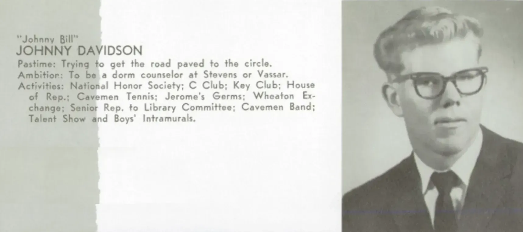 Eventually, of course, the year arrived, and it brought my best, and favorite, memory of Johnny Bill. It came during our final, senior class meeting. We were assembled, purportedly, to prepare for the graduation ceremony. In addition to the cap-and-gown stuff, and marching orders, there was an item of urgent business: what to do with the balance in the class treasury. A wide-ranging, adamant and arm-waving discussion began. Opinions flashed like lightning. The money should be saved for future class reunions. The money should fund a class memorial of some sort. It should be divided evenly among the class members. It should be divided among those most responsible for raising it. I believe the faculty sponsors, I’ve forgotten their names, favored a bequest to the junior class, but that was not a popular idea. Let them raise their own money!