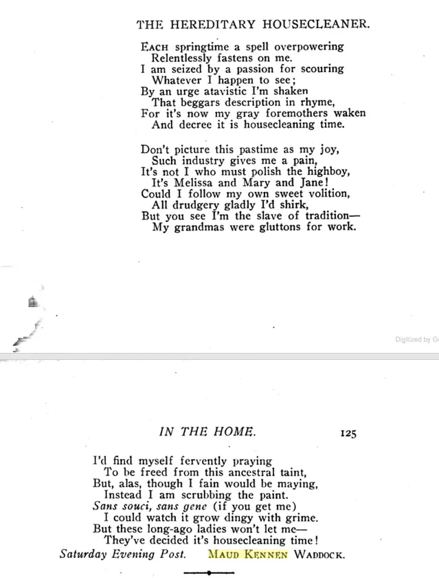 Maud pursued her writing, and published several stories and poems in popular magazines. She had one reprinted from the Saturday Evening Post into Tom Masson's Annual for 1924, and she gained a mention in "The Writer" in 1924 (see below). Maud won the $100 first prize in 1925 for her poem about what to do with a million dollars. She published a poem in 1919 entitled, "The Lament of the Stay-at-Home," in 1922 came a poem in American Cookery, "One Woman's Way," and over the years several more.