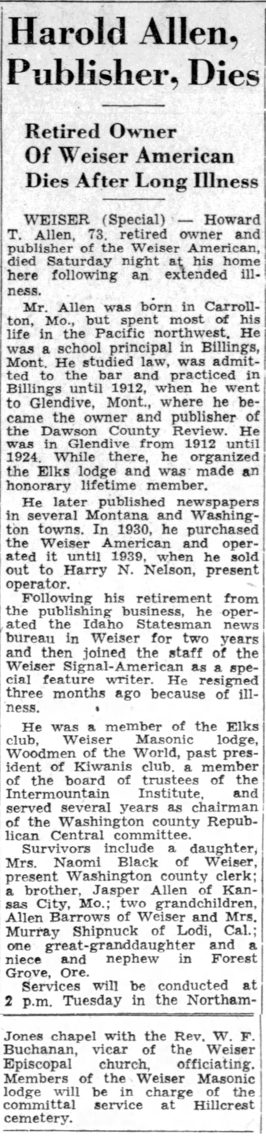 It was Mrs. West who received word her friend and died in 1964, and caused an obituary to be published locally.