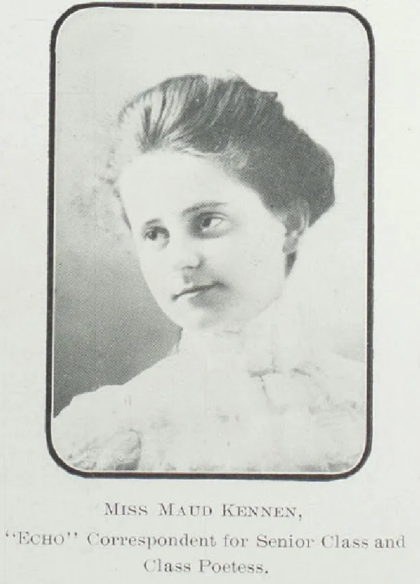 Maude was a celebrated graduate of the normal school, President of the Junior class in 1901, and reporter for the senior class in 1902. The yearbook noted her poetry writing, and expected her to be a "Missionary to the Philippines." She taught school in Webster Groves, Missouri, until she married Vincent E. Waddock (1871-1955) and moved to Texas for a time. They lived in St. Louis after 1919.