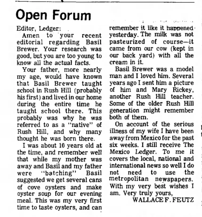Over the years, she made periodic trips to Monticello, Missouri to see friends and family, and seems also to have traveled internationally. She often stayed with her lifelong friend, Reubie Johnson West, Mrs. R. Lance West, in Monticello.