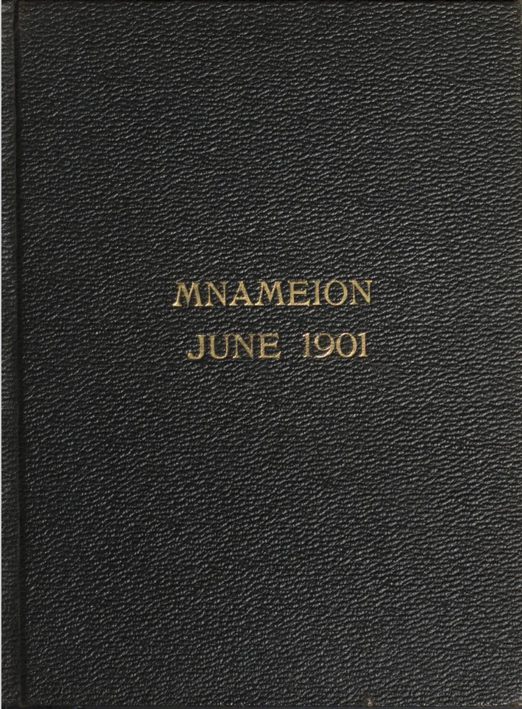 The school, now called Truman State University, began in 1871 as the Kirksville Normal School. It published its first ever yearbook in 1901, "The Mnameion," a name never used again, and it bequeathed a Greek slogan, "Mnameion Eis Gamma", never defined and now a mystery to local scholars. Perhaps the end of the the school's third decade is a clue, gamma sometimes indicating the third, or maybe the use of gamma in studies of transfinite numbers was significant.