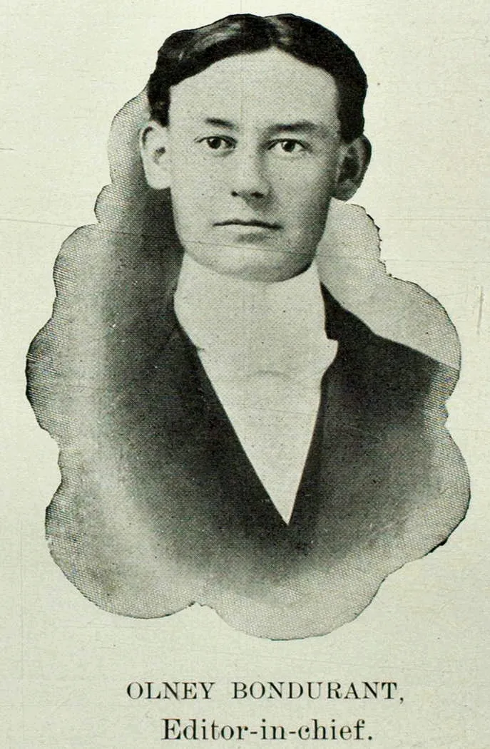 Bondurant's tenure at the Normal School is ambiguous. He participated in school activities, but the yearbook he edited doesn't list him as a member of the senior class, or any other. He is not mentioned as one of the graduates in news articles at the time, but subsequent yearbooks, and eventually news articles, began listing him as a 1901 alumnus.