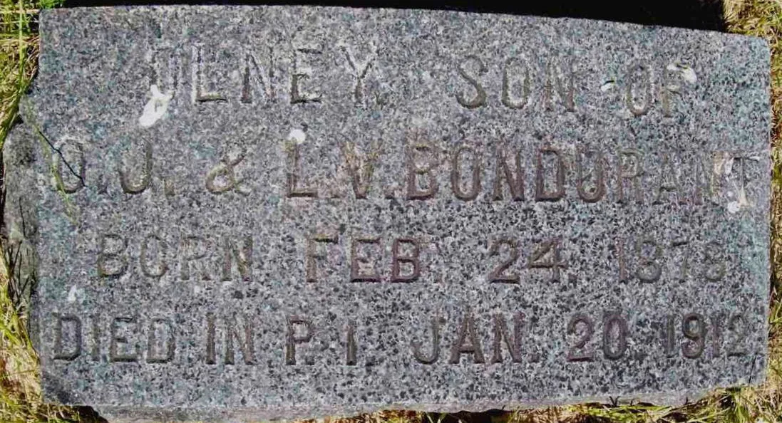 Bondurant was apparently buried on Palawan in the Philippines, but there is a crude stone bearing his name in the Bondurant plot in the Miriam Cemetery of Bethany, Missouri (see above). This Mnameion to the adventurous Olney was perhaps placed there by his father.
