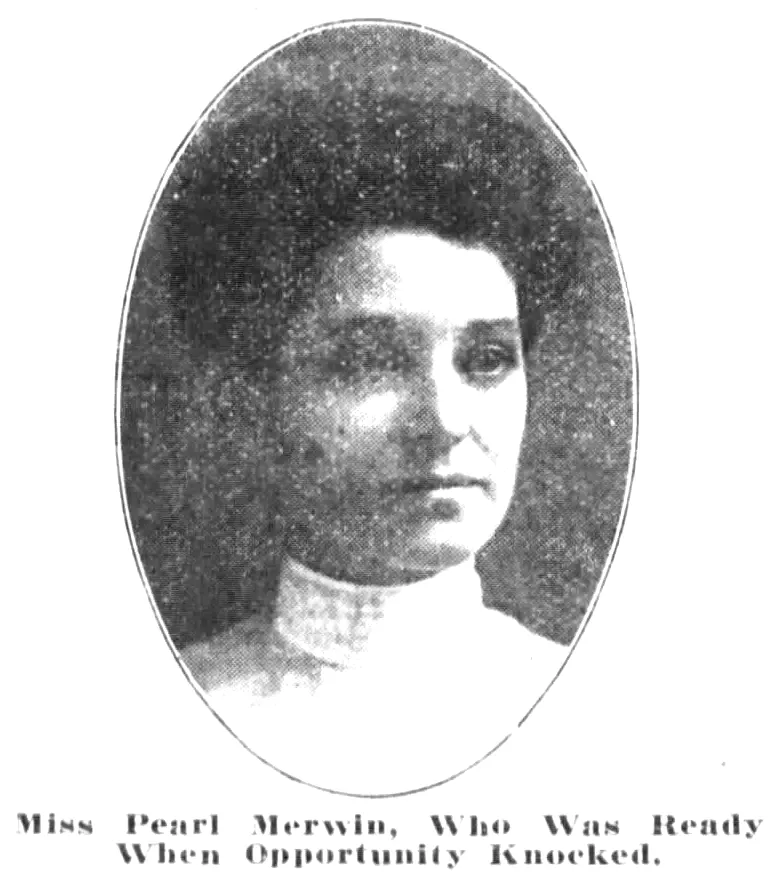 We've found a nearby newspaper advertisement for the school, and it features a picture of Pearl Merwin. Perhaps that is the likeness of Pearl Stelle from her school todays.