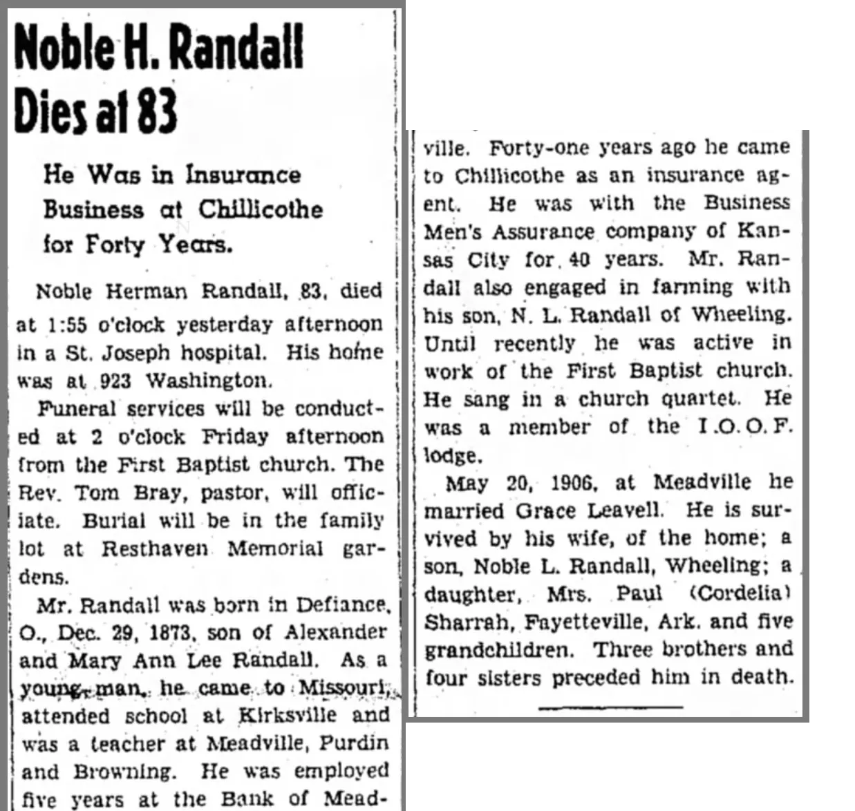 Death: September 8, 1963, Kirksville, Missouri