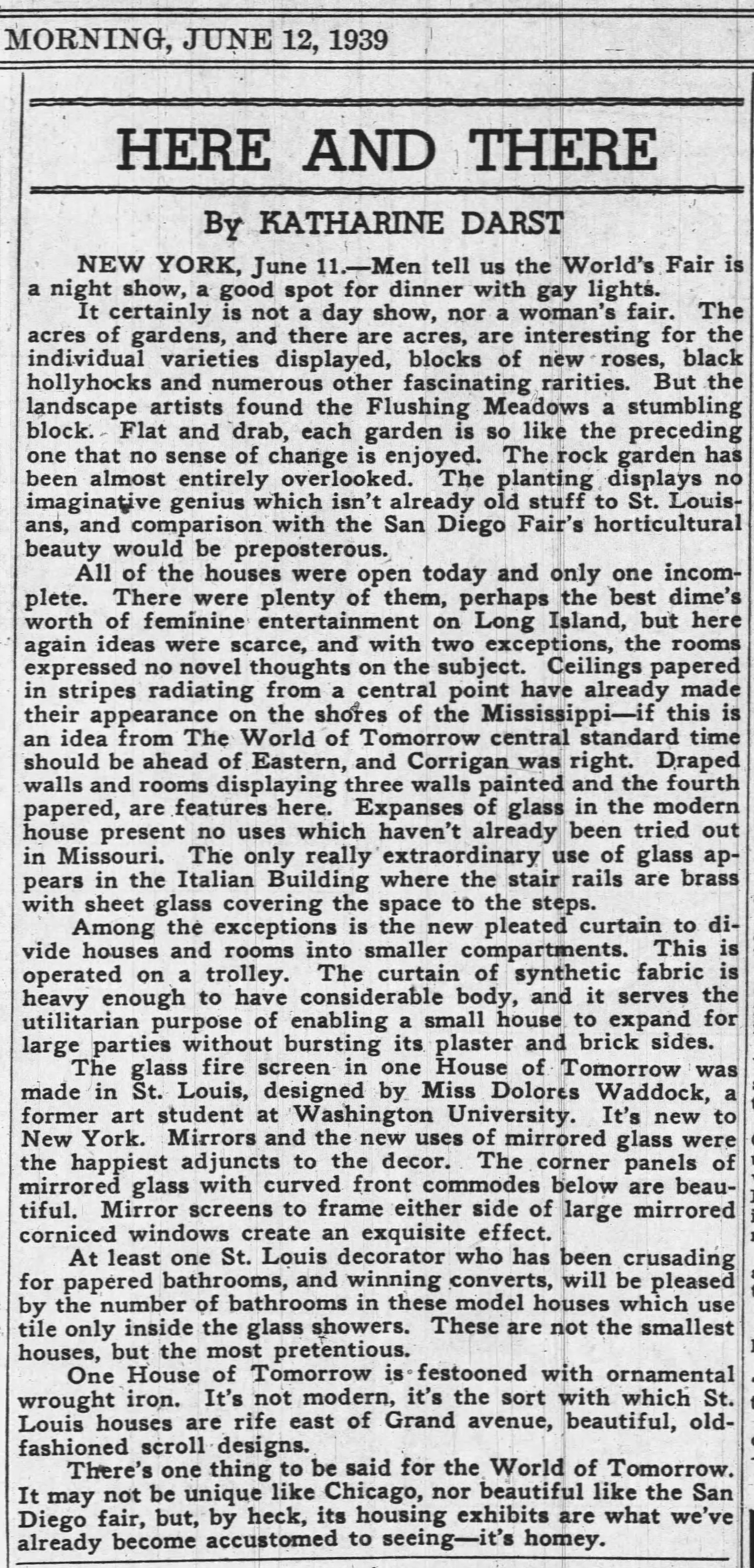 She and Vincent had one child, a daughter, Delores Kennen Waddock (1903-1979). Delores lived at home while her parents lived, and was employed as an artist. She studied art at Washington University, St. Louis, and was elected secretary of the Art School Association. Delores designed one of the fire screens in the House of Tomorrow for the 1939 World's Fair. She never married, and worked as a designer k for a glass company. She died in 1979.