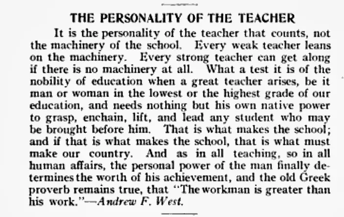 The yearbooks published during his twenty-five year tenure as school president all speak with awed respect of their school's president. He seems to have been a powerful force of good, and his little school sent a steady stream of what were, by all accounts, excellent teachers into the state, the country...the world. We're linking other people's biographies here, rather than providing a synopsis, since their authors were closer to the subject.