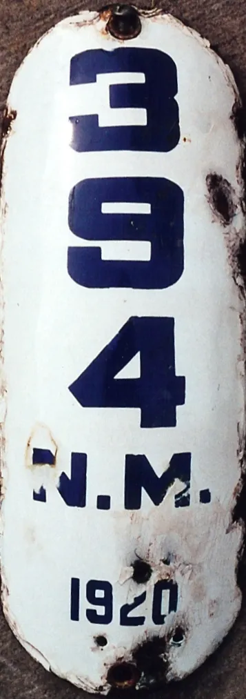 Eric Taylor shares his extensive research on porcelain license plates at his web site. The picture of a 1920 motorcycle plate (right) links to the New Mexico section of his web site. You'll probably want to check out his other research as well.